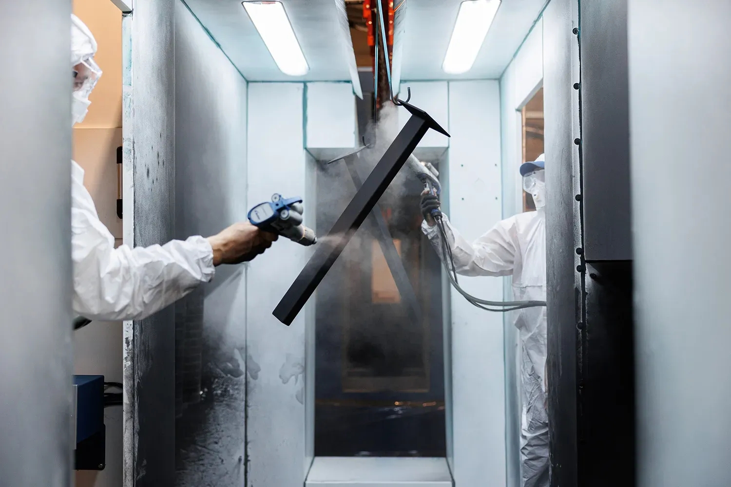 Conveiorul utilizat în cadrul instalației noastre poate suporta o greutate de aproximativ 2,5 tone, permițându-ne să lucrăm cu piese de dimensiuni și greutăți variate. Pe acest sistem de prindere sunt montați suporți dubli de 3 metri lungime, oferind stabilitate și securitate în timpul procesului de vopsire. În plus, acești suporți pot fi demontați în cazul în care este necesar, utilizând cârlige de prindere din oțel, asigurând o manipulare ușoară și rapidă a pieselor.